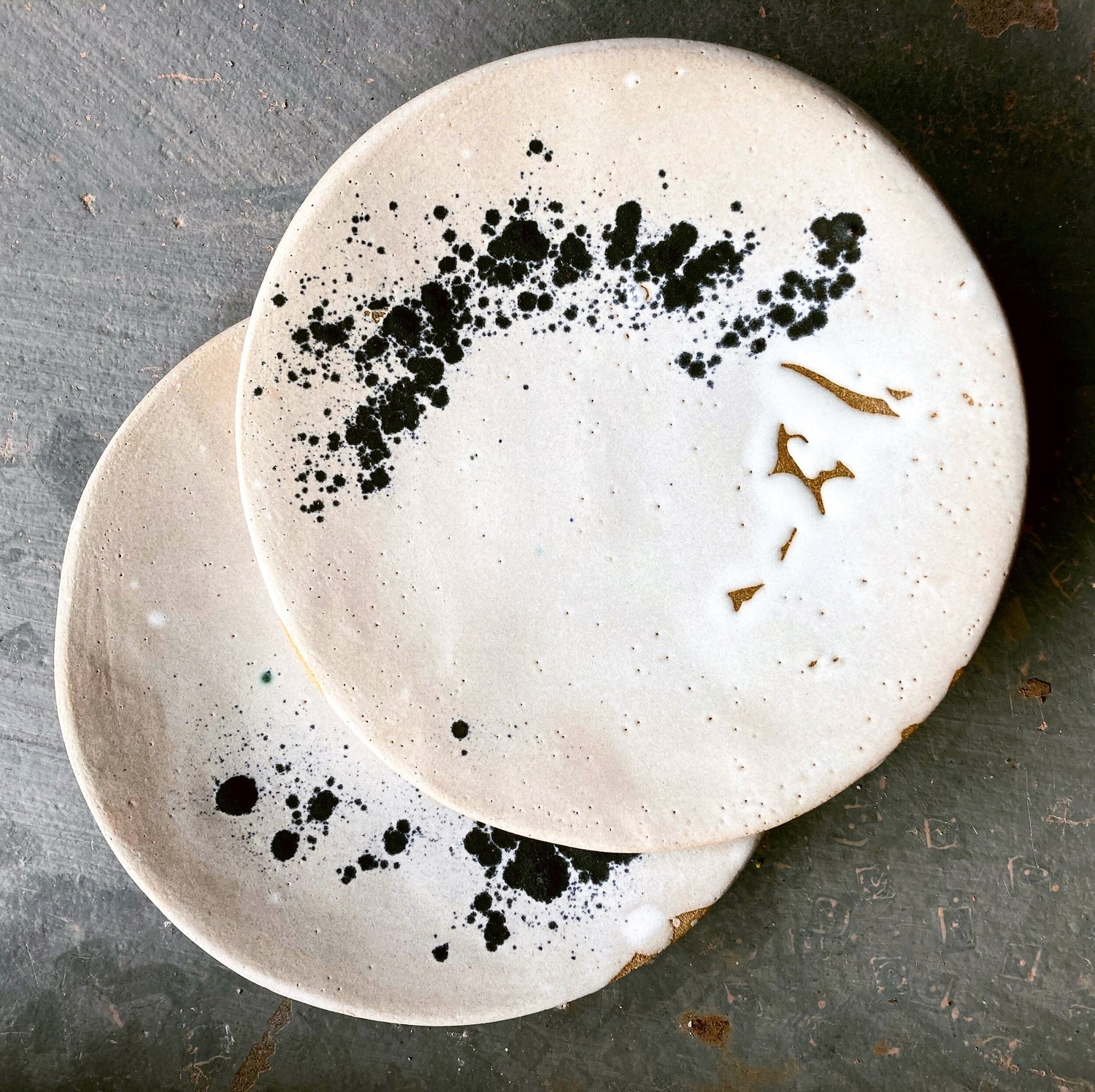 snowy white matte glaze with charcoal pigment